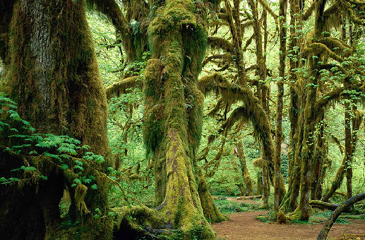 The park was established in 1938 after President Franklin D. Roosevelt visited and was duly impressed with the region and its wildlife. Three loop trails near the Hoh Visitor Center are easy to stroll and give a great sampling of the area: The Hall of Mosses Trail is 3/4 mile and shows the moss-draped maples, magically green in the spring, spectacular with color in the fall and a treat any time of year; the 1 1/4 mile Spruce Trail follows the Hoh River along red alder and maple "bottom", and shows the landscape carved by this glacier-fed river; and a paved 1/4 mile path suitable for a wheelchair or stroller.